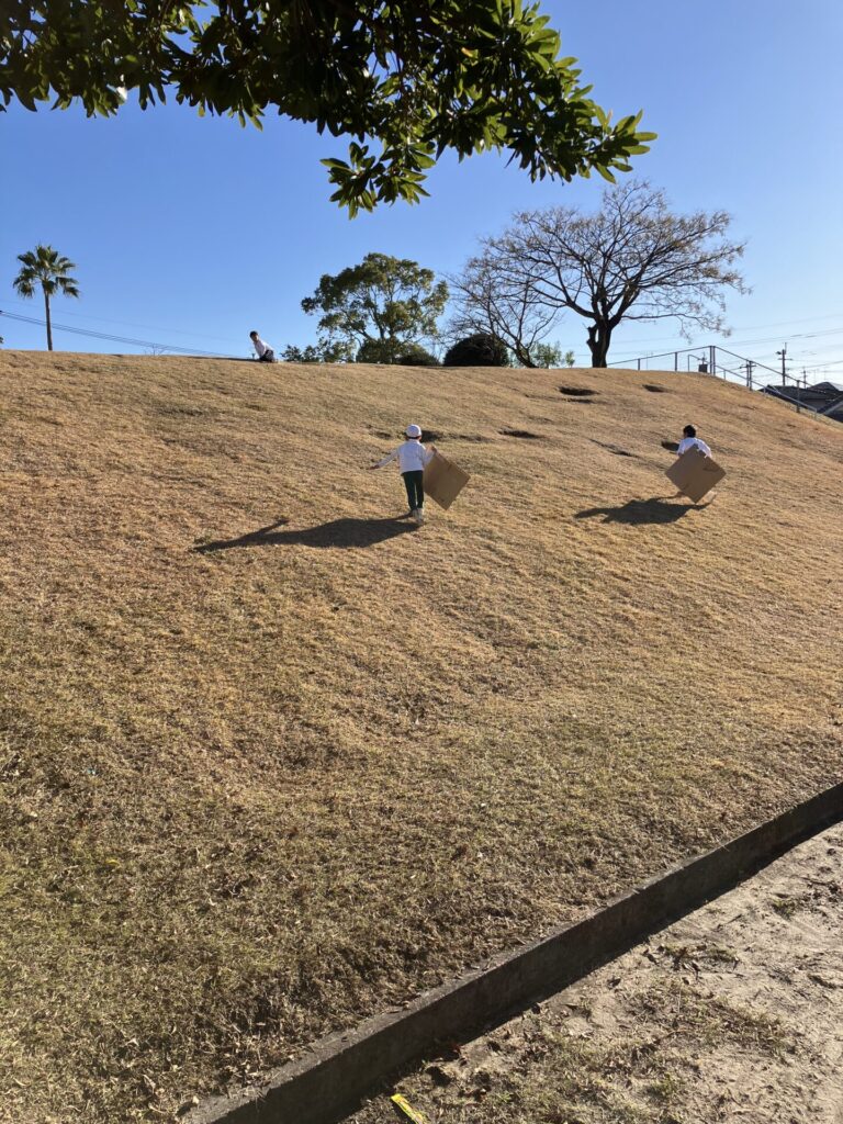 着いてすぐにダンボール草滑りを始め、時間一杯、基礎感覚をフルにつかって楽しく遊びました🛝